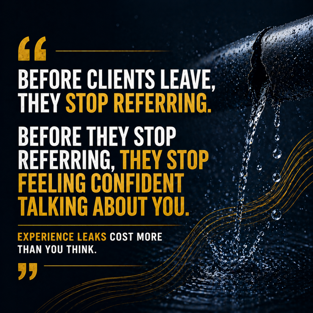 An experience leak happens when the way your business feels to the client doesn’t match the level of trust you’re trying to build.