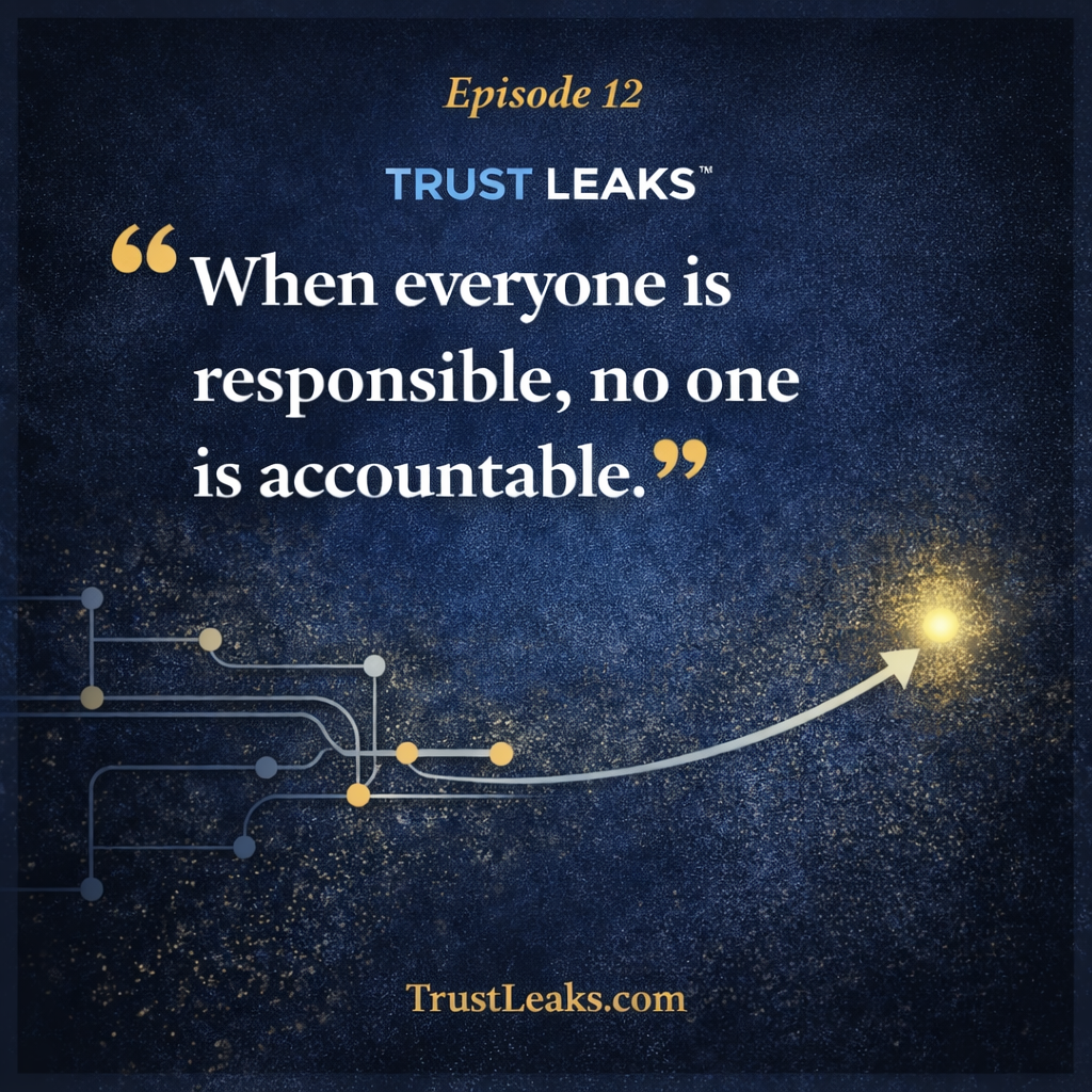 To hear the full discussion, listen to Trust Leaks™️ Podcast – Episode 12: Responsibility Diffusion: The Ownership Gap That’s Costing You Trust on Apple, Spotify or YouTube.
